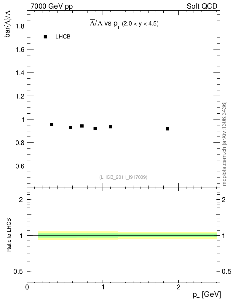 Soft QCD (inelastic) : Identified Particles : Ratios : Λbar/Λ vs pT