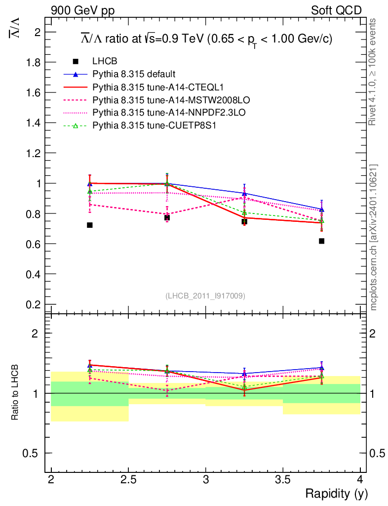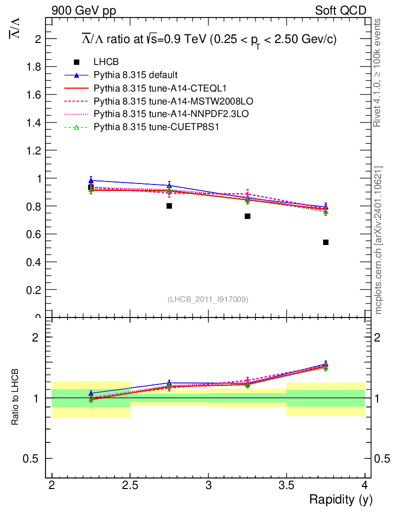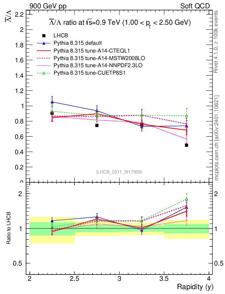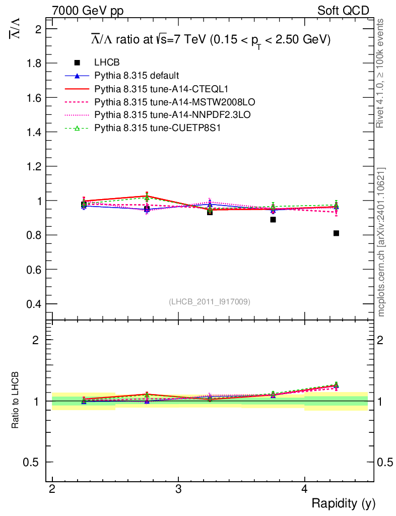 Soft QCD (inelastic) : Identified Particles : Ratios : Λbar/Λ vs |y|