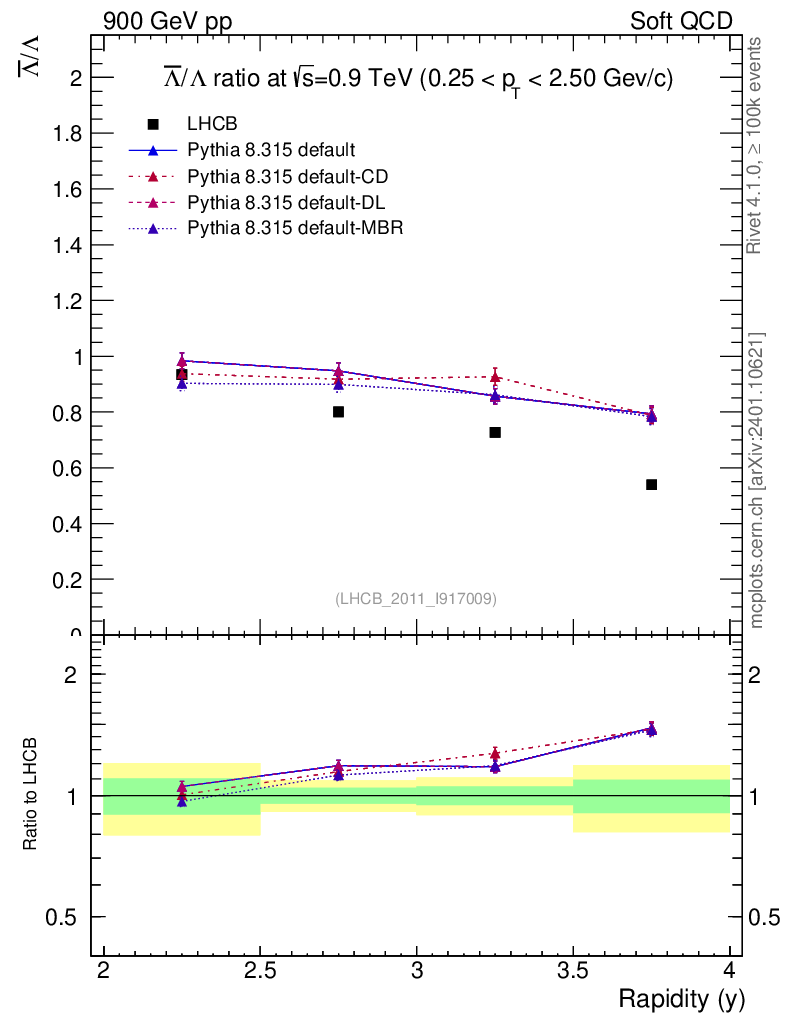 Soft QCD (inelastic) : Identified Particles : Ratios : Λbar/Λ vs |y|