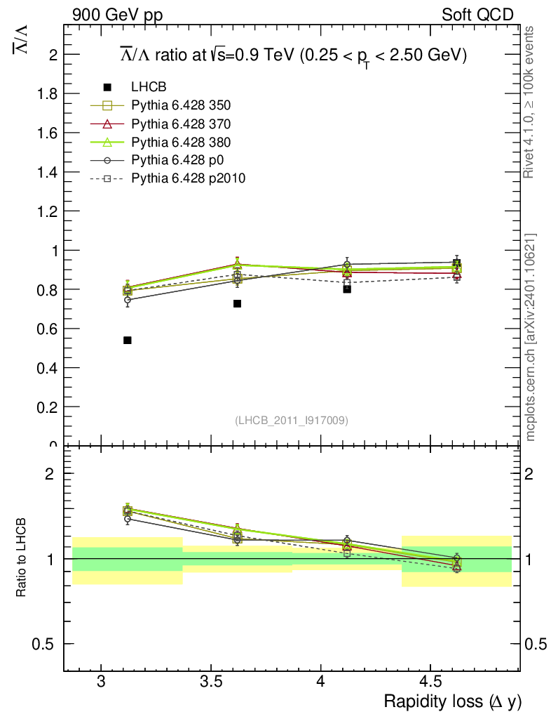 Soft QCD (inelastic) : Identified Particles : Ratios : Λbar/Λ vs |Δy|