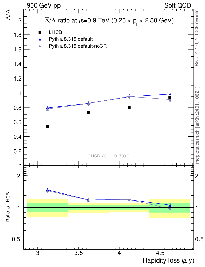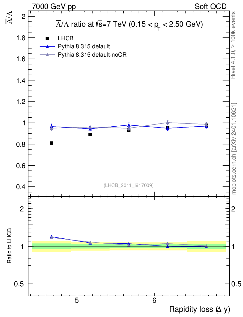 Soft QCD (inelastic) : Identified Particles : Ratios : Λbar/Λ vs |Δy|