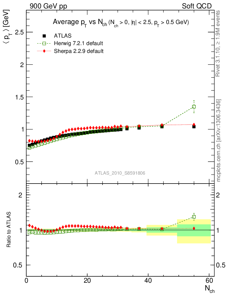 Soft QCD (inelastic) : <pT> vs Nch