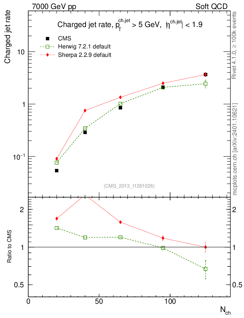 Soft QCD (inelastic) : Jet Multiplicities : Nj vs Nch