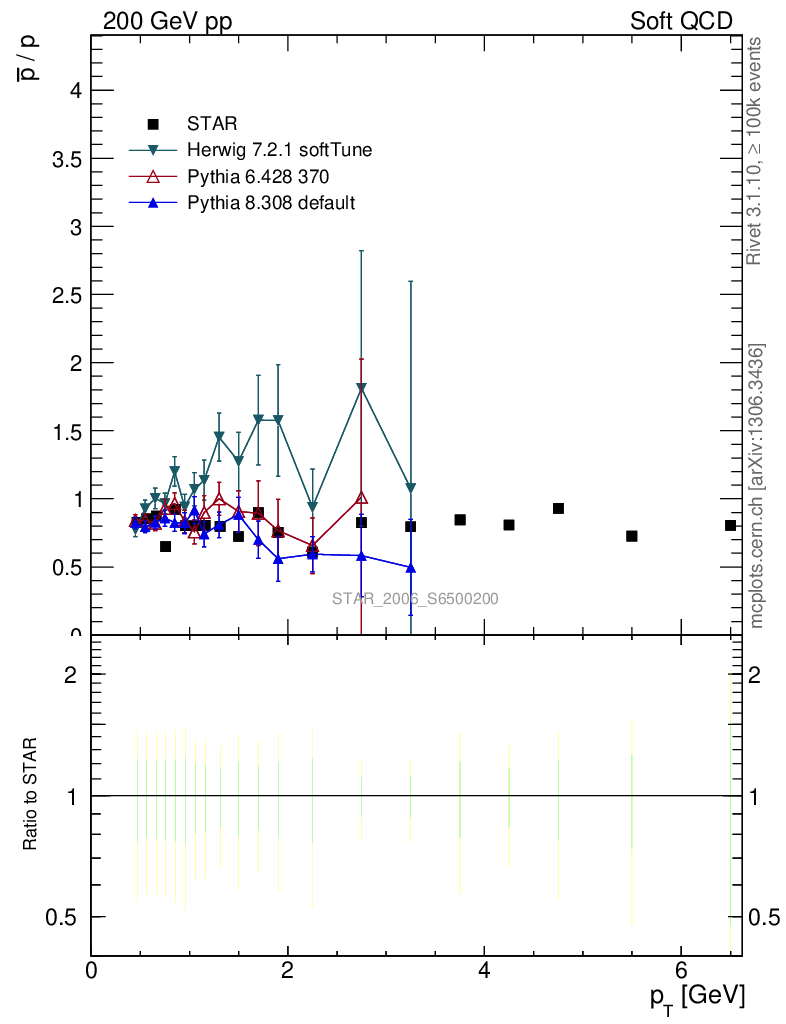 Soft QCD (inelastic) : Identified Particles : Ratios : pbar/p vs pT