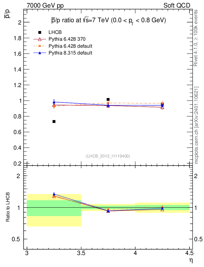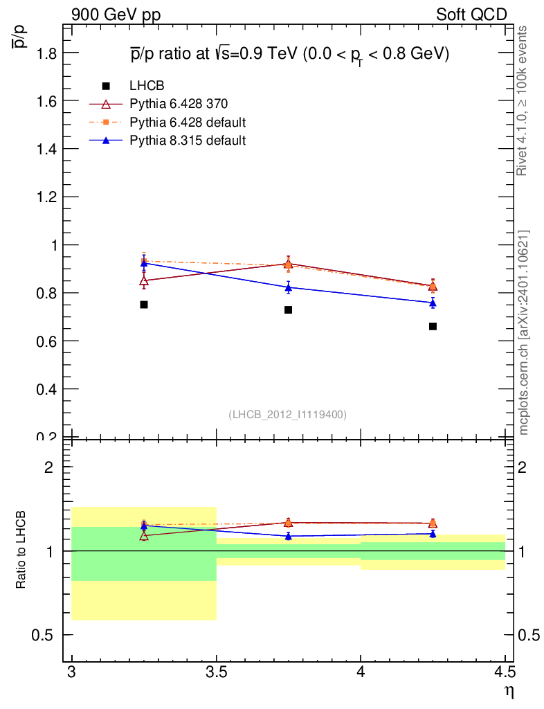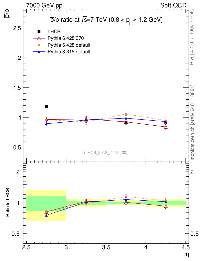 Soft QCD (inelastic) : Identified Particles : Ratios : pbar/p vs |y|
