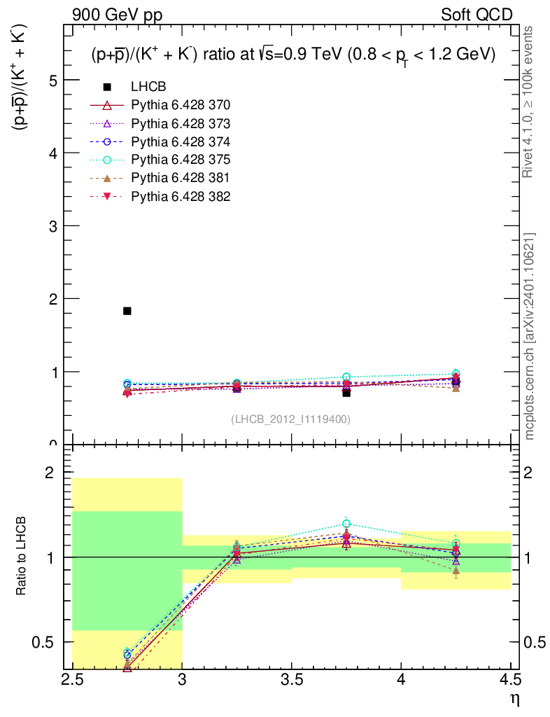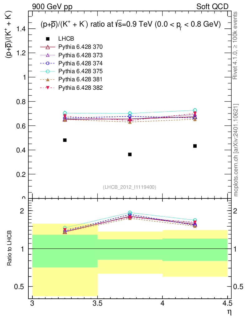 Soft QCD (inelastic) : Identified Particles : Ratios : (pbar+p)/(K-+K+) vs |y|