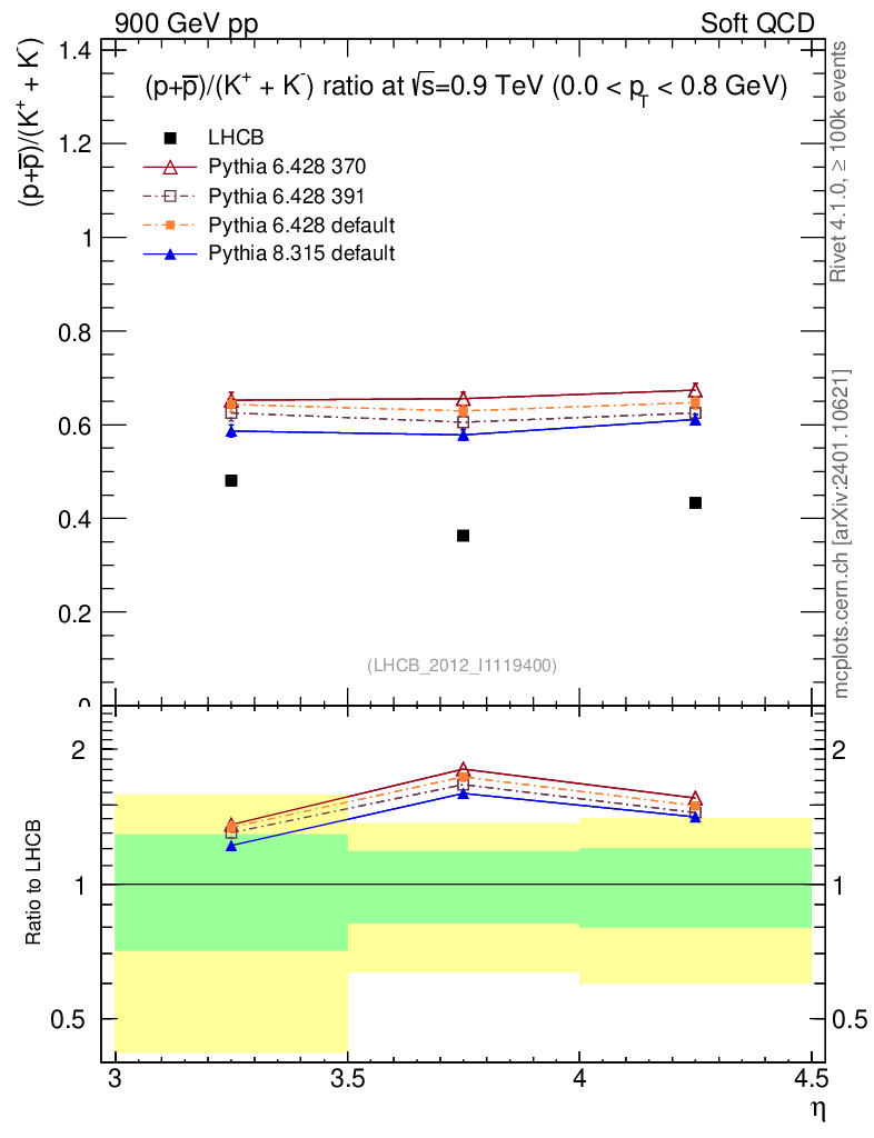 Soft QCD (inelastic) : Identified Particles : Ratios : (pbar+p)/(K-+K+) vs |y|