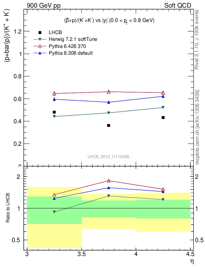Soft QCD (inelastic) : Identified Particles : Ratios : (pbar+p)/(K-+K+) vs |y|