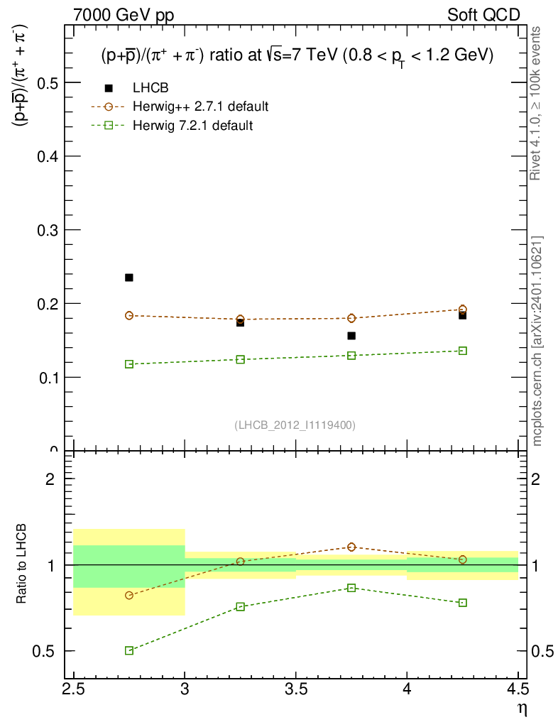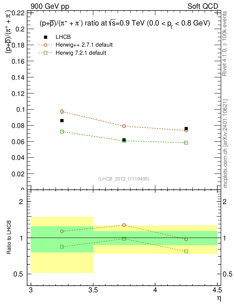 Soft QCD (inelastic) : Identified Particles : Ratios : (pbar+p)/(π-+π+) vs |y|