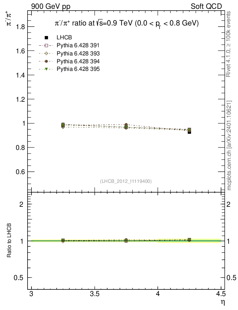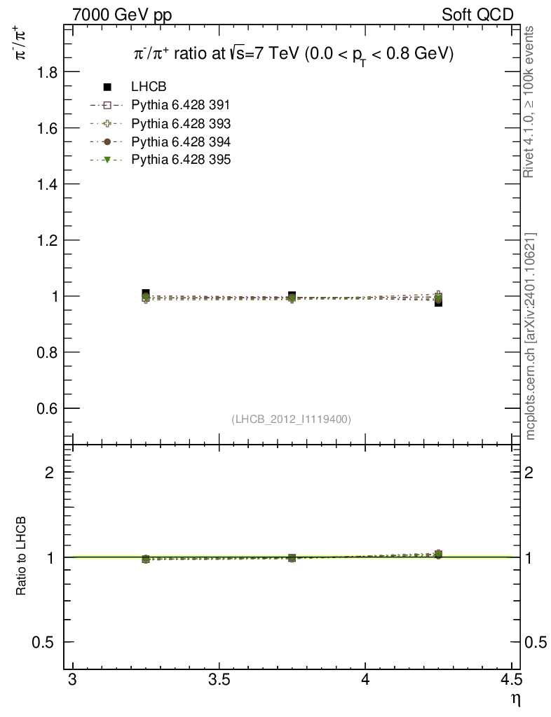 Soft QCD (inelastic) : Identified Particles : Ratios : π-/π+ vs |y|