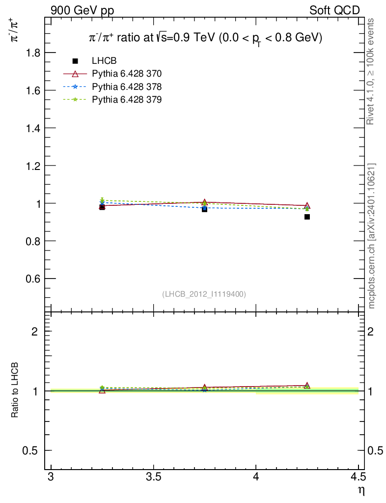 Soft QCD (inelastic) : Identified Particles : Ratios : π-/π+ vs |y|