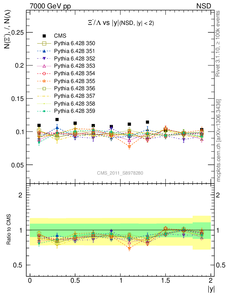 Soft QCD (nsd only) : Identified Particles : Ratios : Ξ-/Λ vs |y|