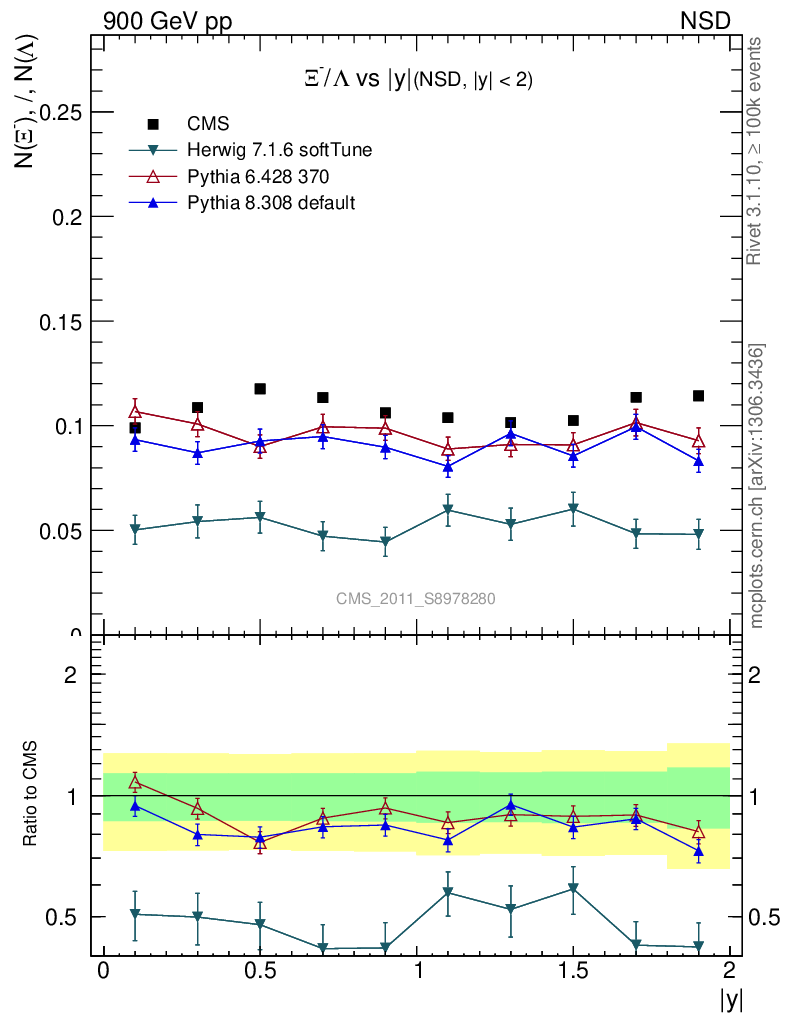 Soft QCD (nsd only) : Identified Particles : Ratios : Ξ-/Λ vs |y|