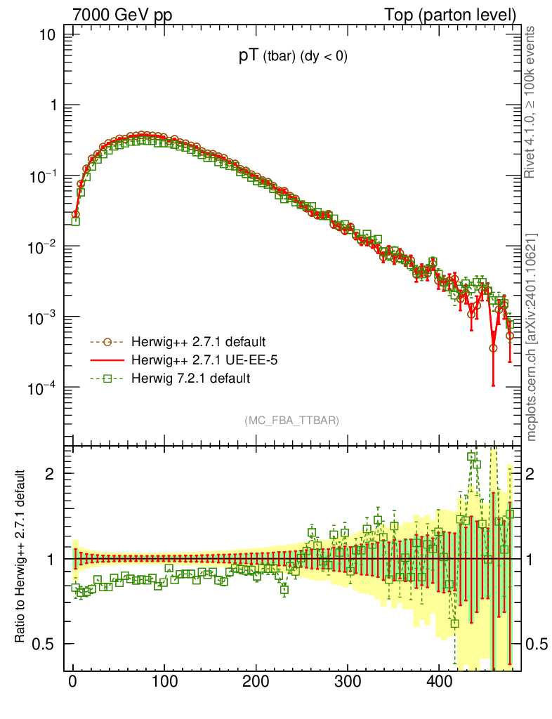 Top (parton level) : Individual tops : pT (tbar)