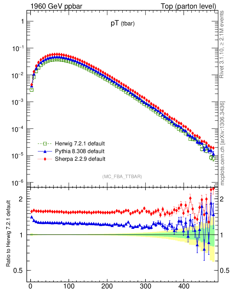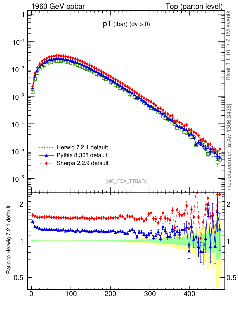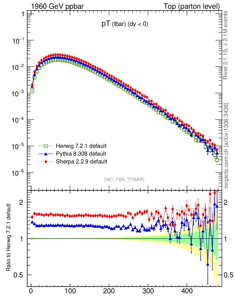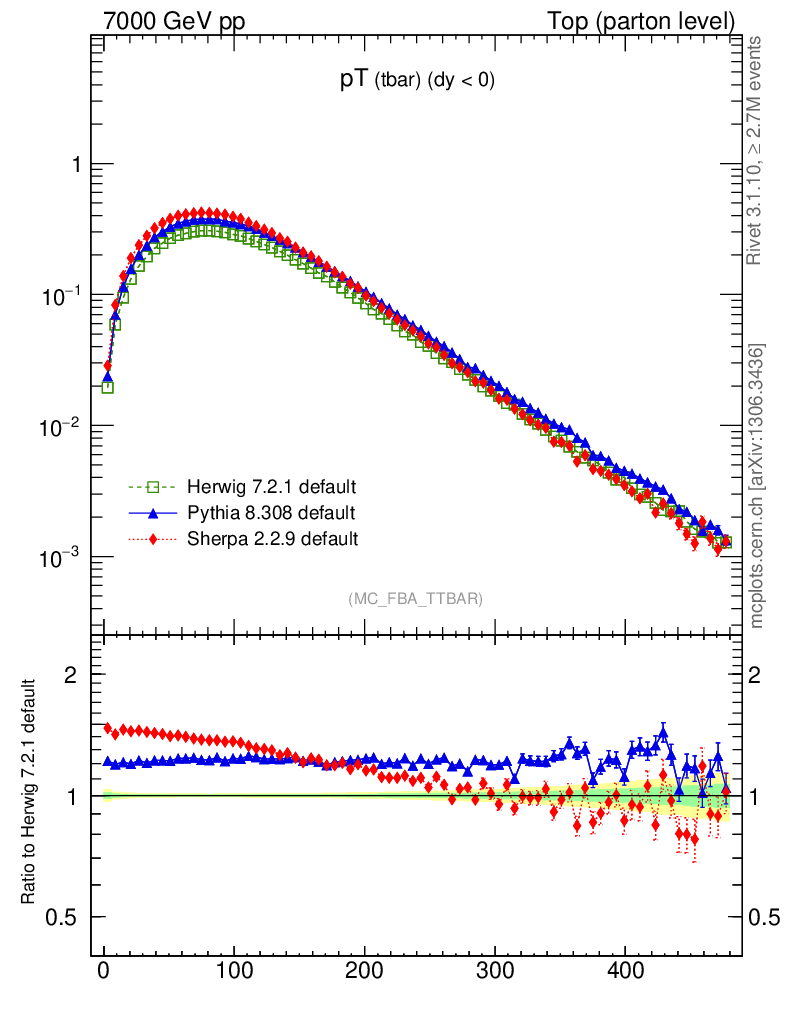 Top (parton level) : Individual tops : pT (tbar)