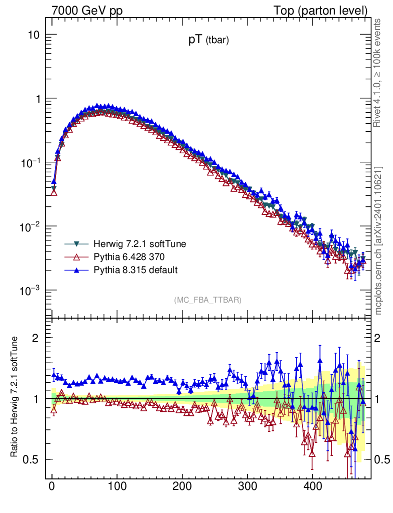 Top (parton level) : Individual tops : pT (tbar)