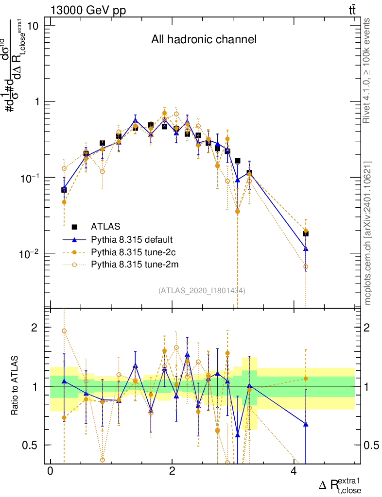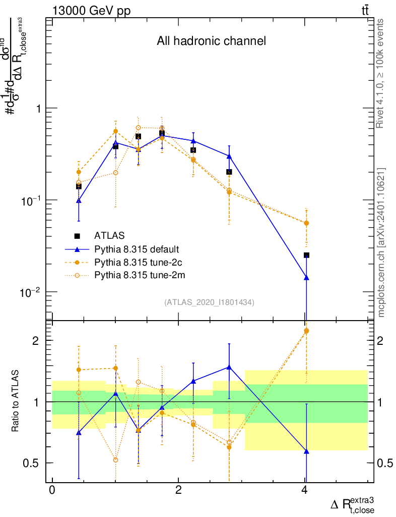 ) : ΔR(top, extra jet)