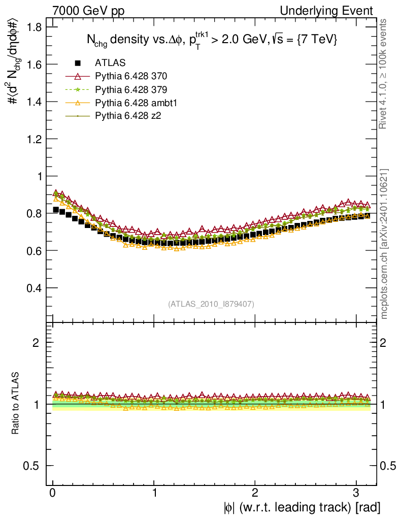 Underlying Event : Δφ distributions : <Nch> vs Δφ