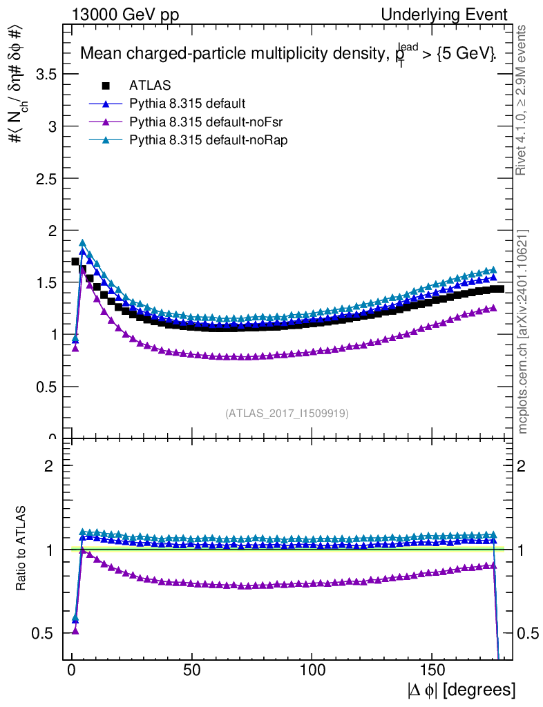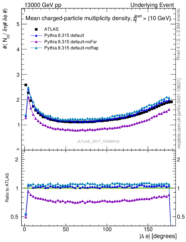 Underlying Event : Δφ distributions : <Nch> vs Δφ