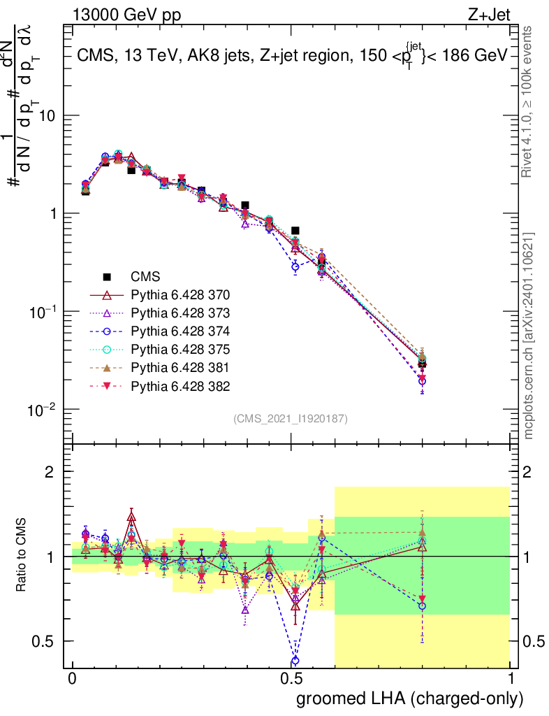 Z+Jet : Generalized angularities : Groomed LHA λ