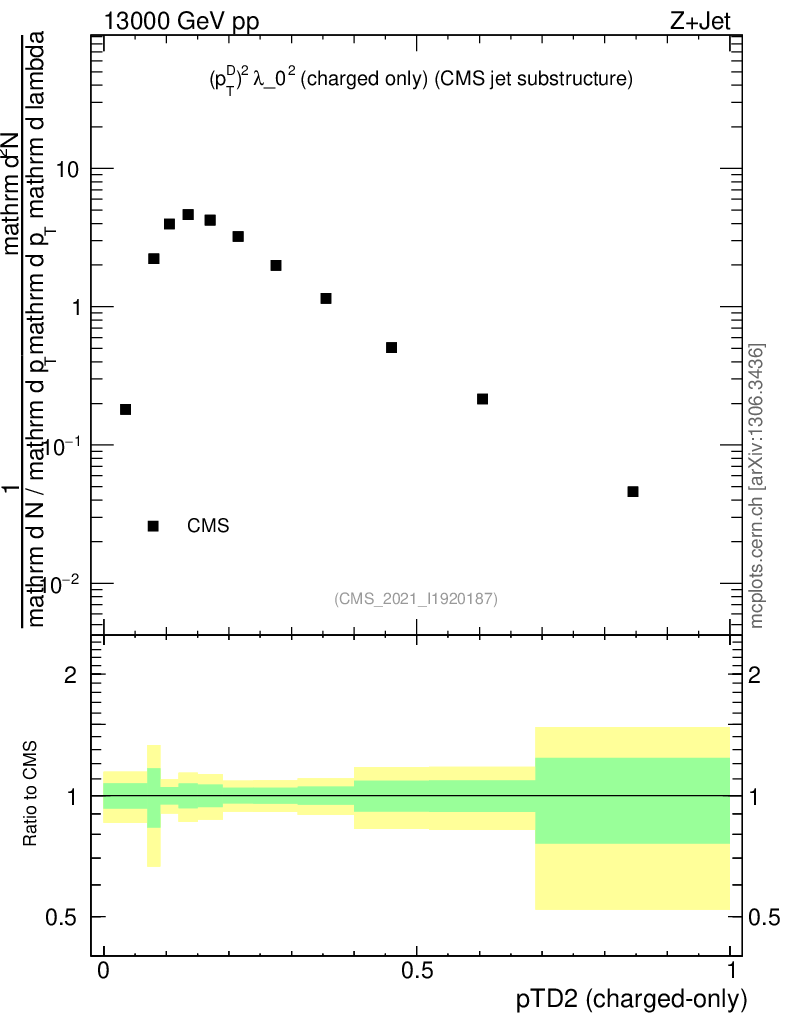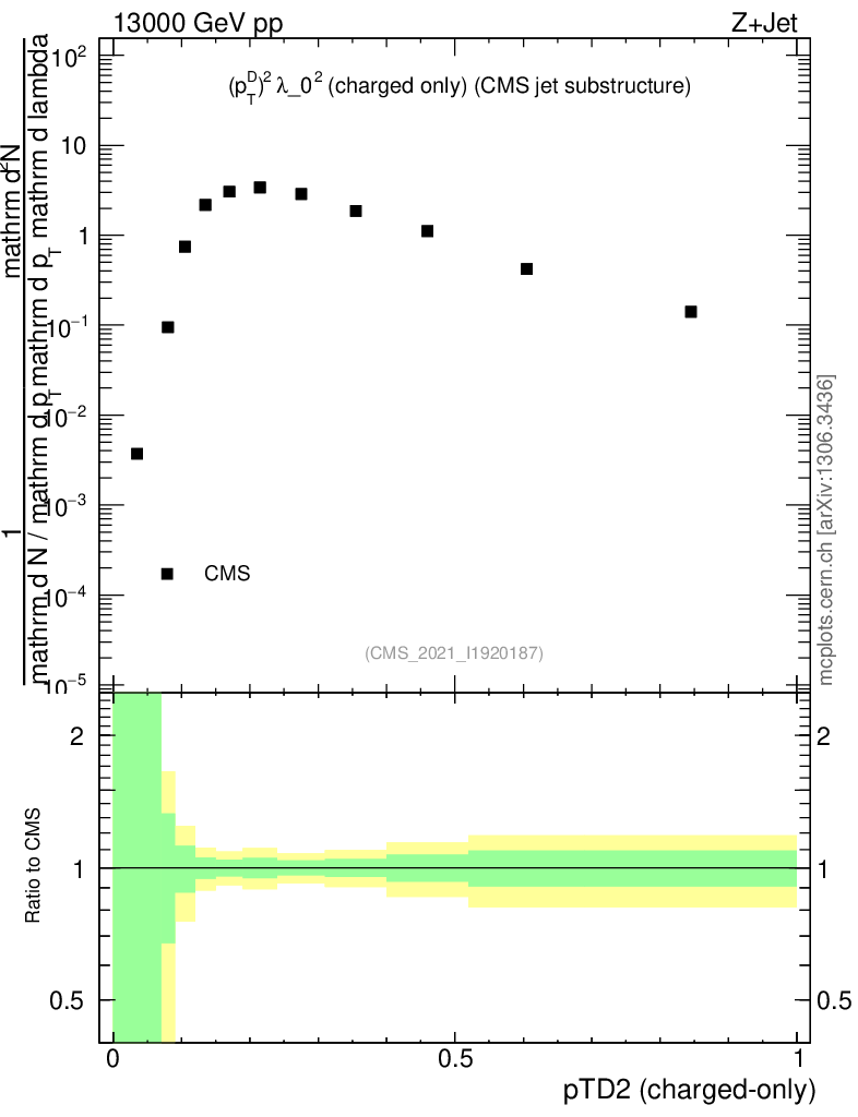 Z+Jet : Generalized angularities : (pDT)2 λ20 (charged only)