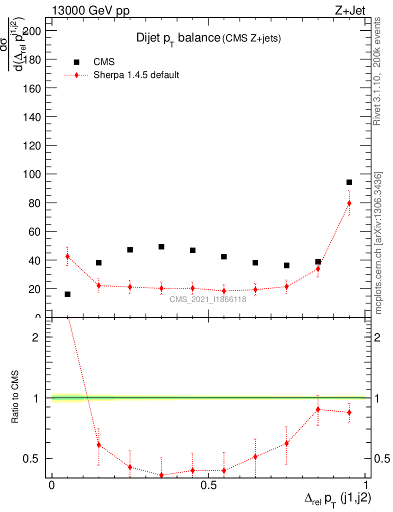 Plot of jj.dpt in 13000 GeV pp collisions