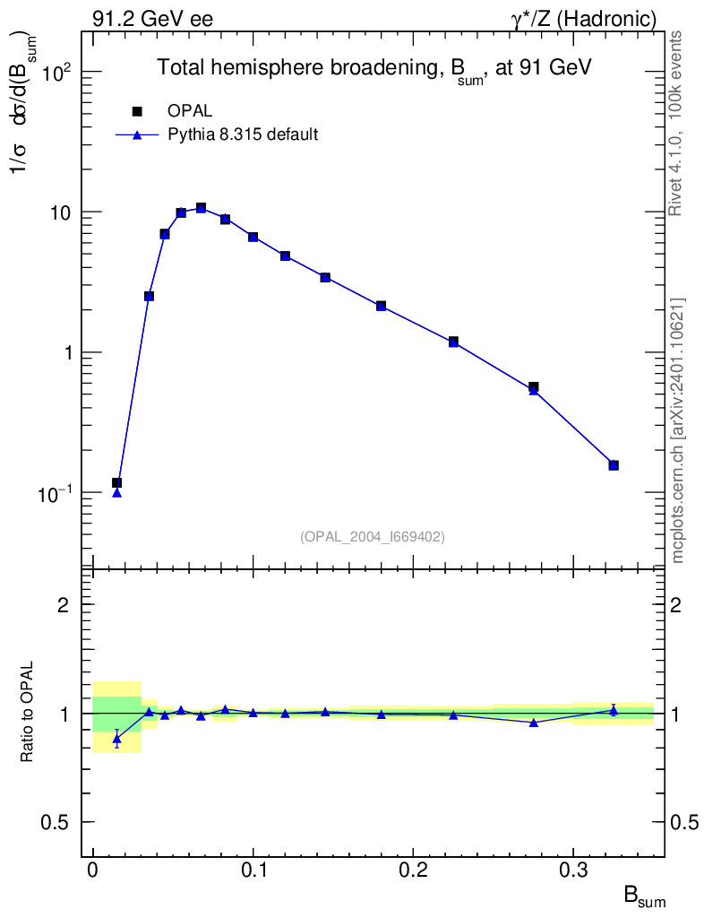 Plot of broadj in 91.2 GeV ee collisions