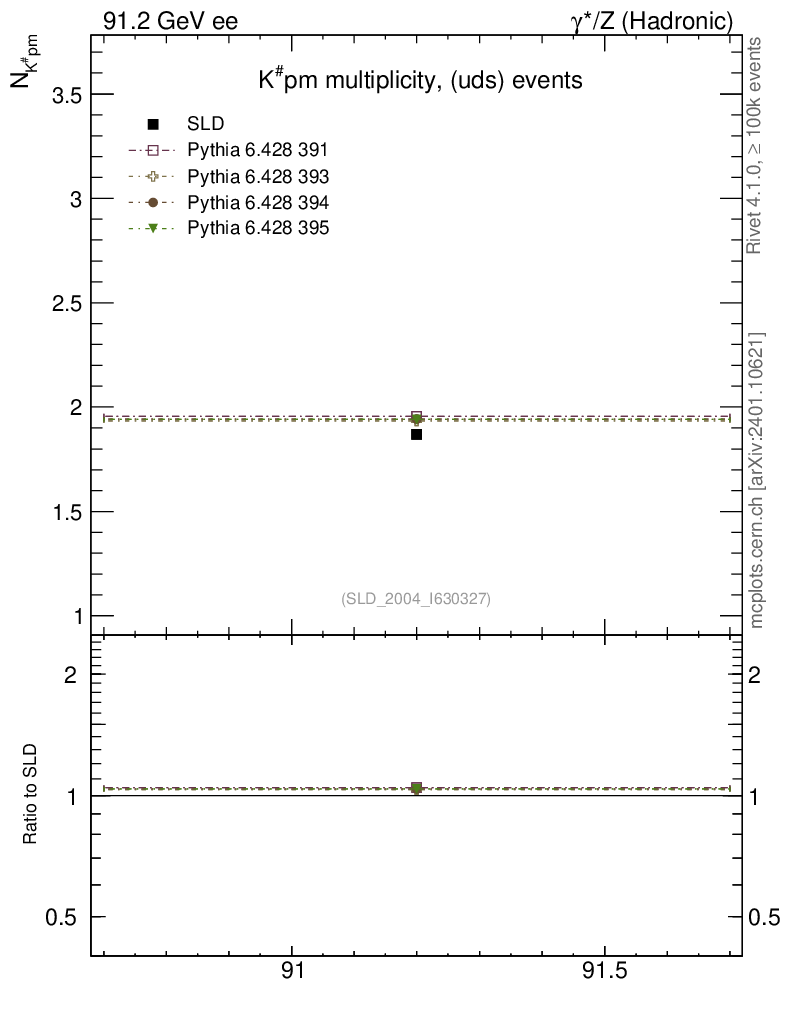ee : γ*/Z (hadronic) : Identified Particles : K multiplicity