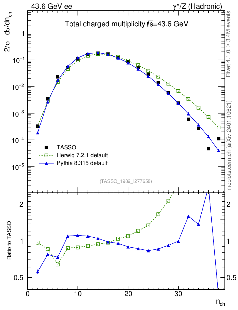 ee : γ*/Z (hadronic) : Charged Particles : Multiplicity Distribution