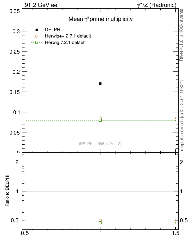 ee : γ*/Z (hadronic) : Identified Particles : η' multiplicity