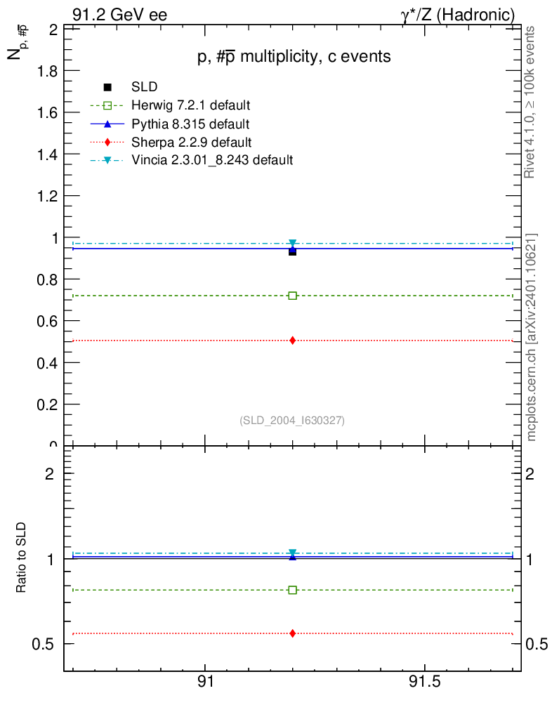 ee : γ*/Z (hadronic) : Identified Particles : p multiplicity