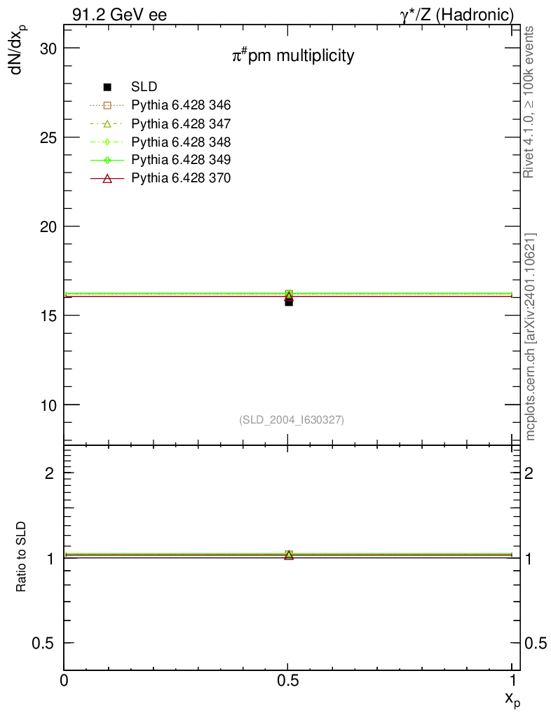 ee : γ*/Z (hadronic) : Identified Particles : π multiplicity