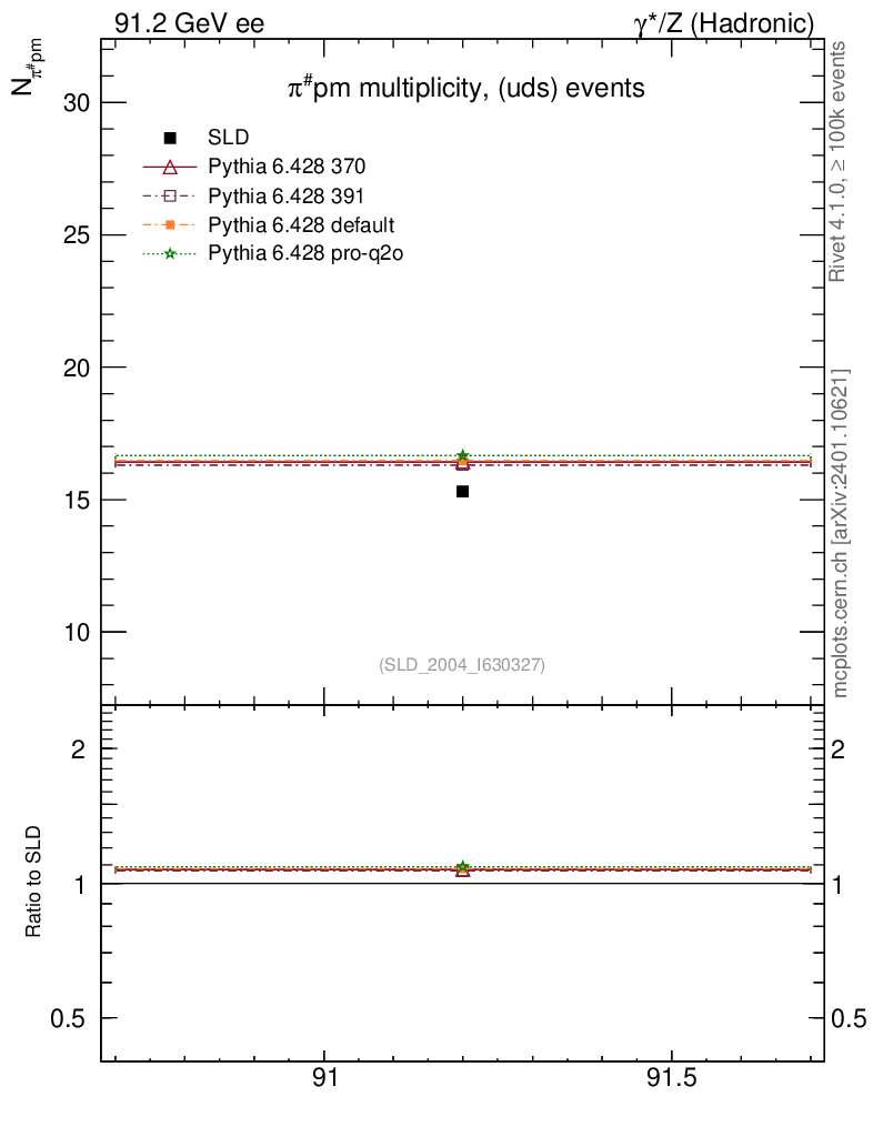 ee : γ*/Z (hadronic) : Identified Particles : π multiplicity
