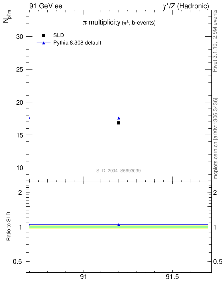 ee : γ*/Z (hadronic) : Identified Particles : π multiplicity