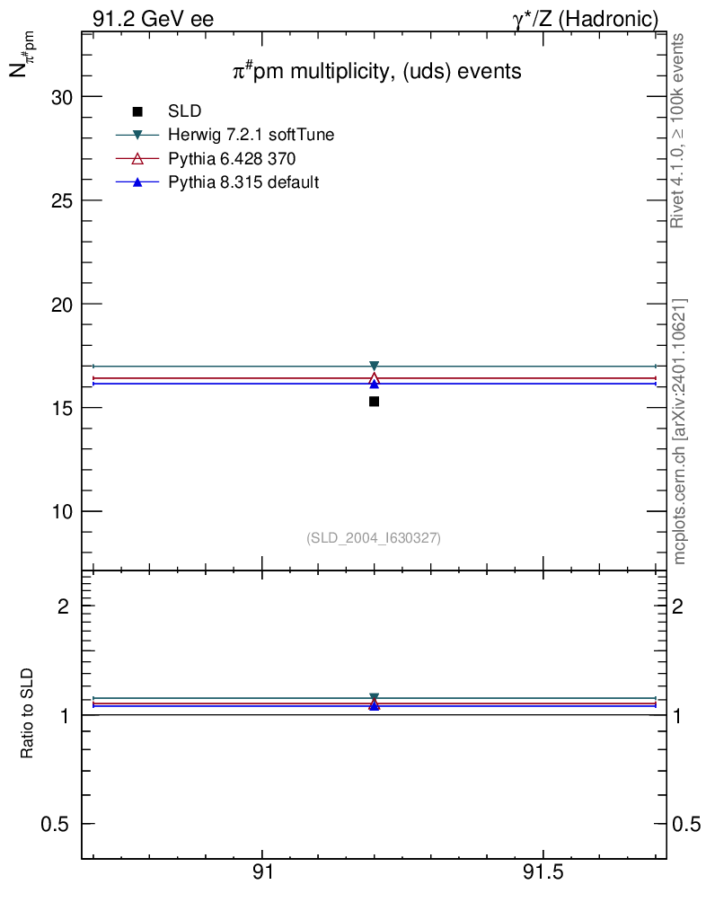 ee : γ*/Z (hadronic) : Identified Particles : π multiplicity