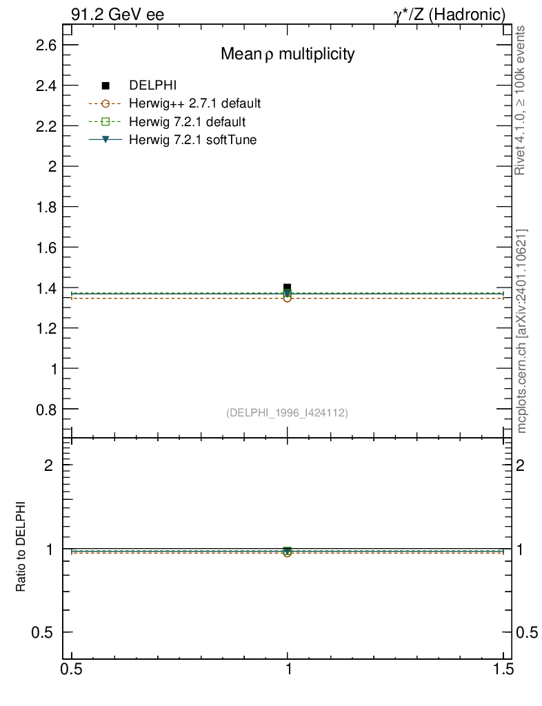 ee : γ*/Z (hadronic) : Identified Particles : ρ multiplicity