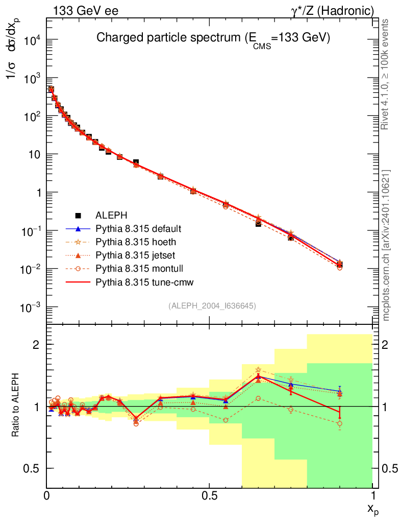 Plot of x in 133 GeV ee collisions