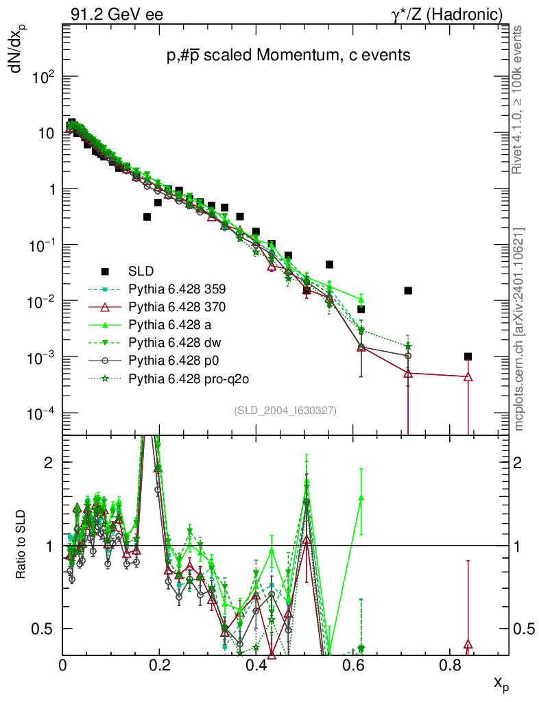 ee : γ*/Z (hadronic) : Identified Particles : p spectrum