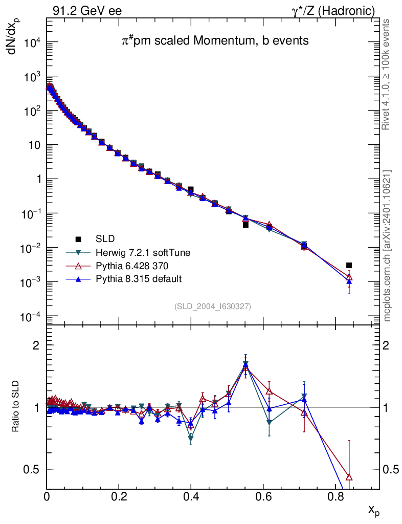 ee : γ*/Z (hadronic) : Identified Particles : π spectrum