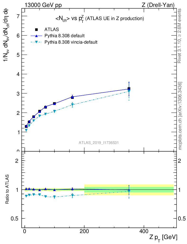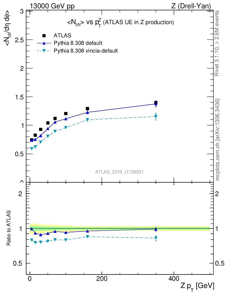 Z (Drell-Yan) : Underlying event : <Nch> vs p