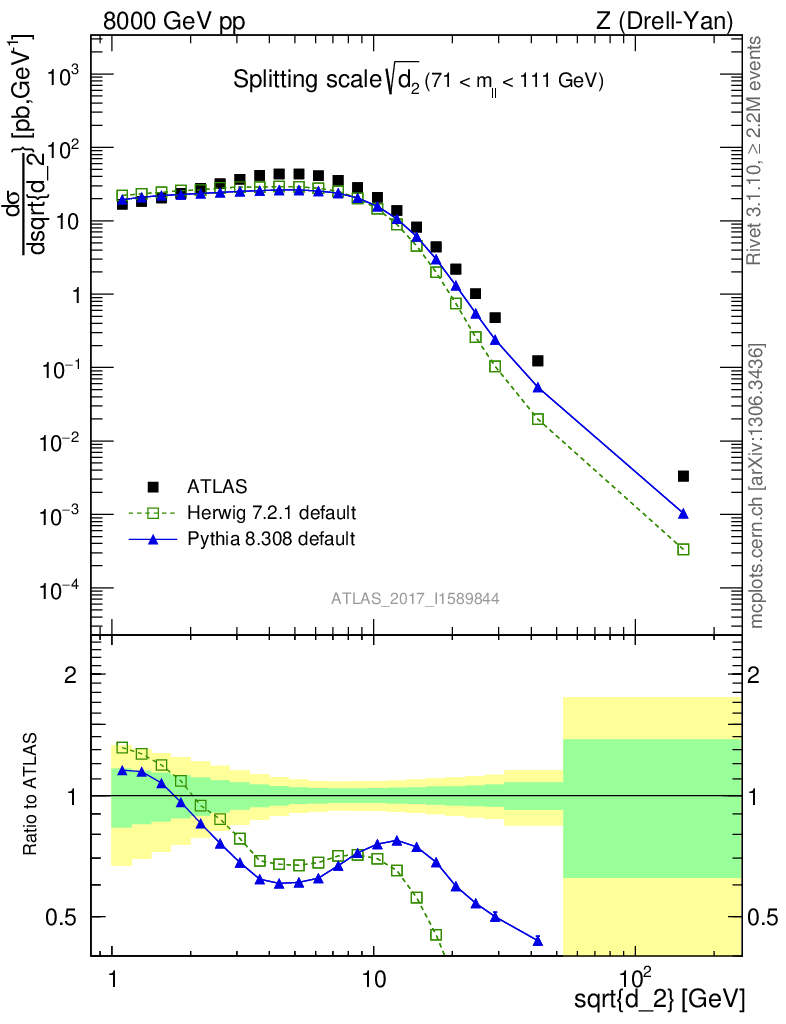 Z (Drell-Yan) : Jet Substructure : Splitting scale d2
